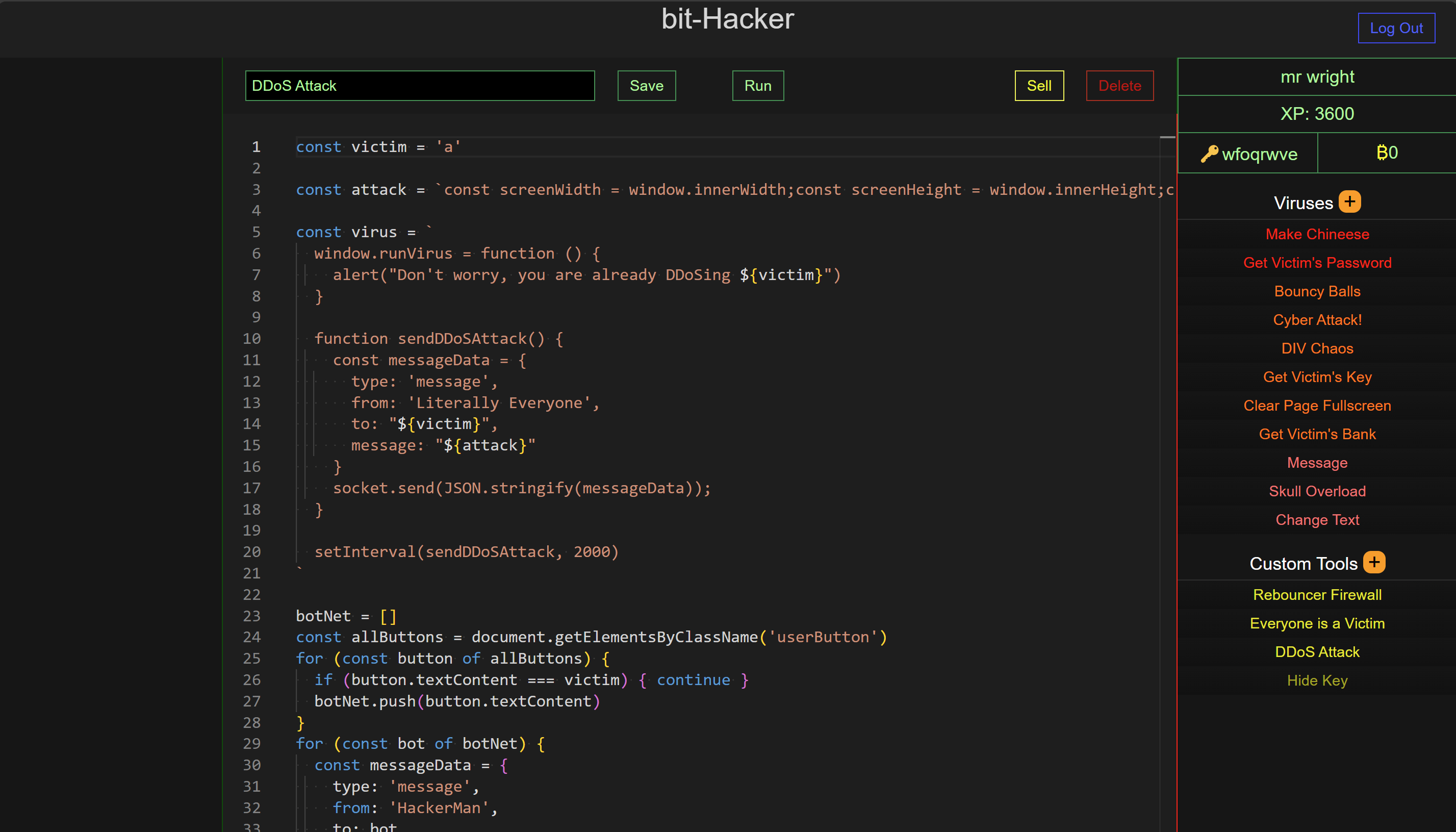 bit-Hacker A fun hacking game to learn JavaScript. |